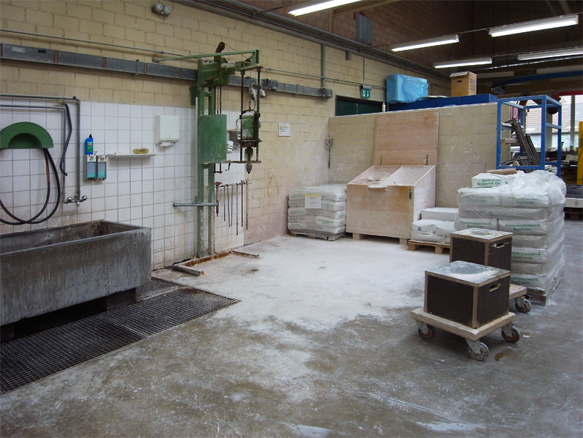 raw materials used in the creation of ceramic are also housed in the development and prototyping workspace