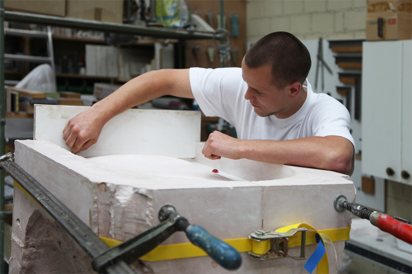 designboom visits LAUFEN's design development team, who work with new pieces from their first conceptualization through mold-making and prototype analysis as a design is prepared for production